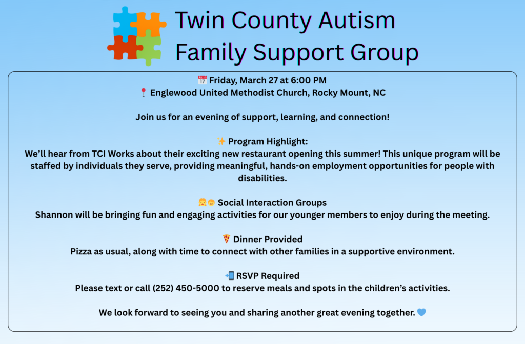 Please text or call (252) 450-5000 to reserve meals and spots in the childrenβs activities.